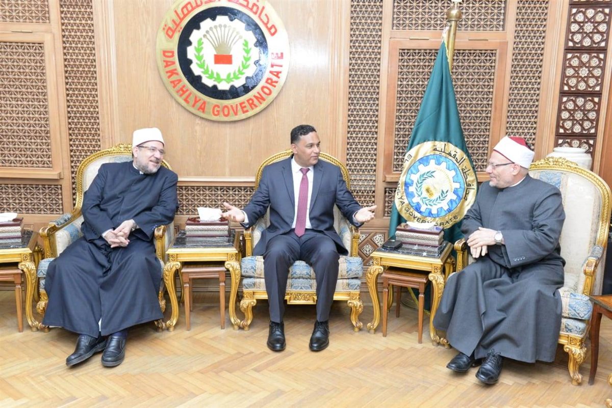 استقبل الدكتور أيمن مختار، محافظ الدقهلية، اليوم الجمعة، الدكتور محمد مختار جمعه، وزير الأوقاف، والدكتور شوقي علام، مفتي الجمهورية، وذلك في إطار زيارتهم للمحافظة لافتتاح مسجد عزبة 9 بقرية الربيعة بمركز دكرنس.