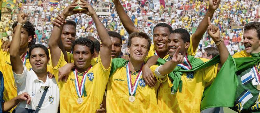 عام 94: أقيمت هذه البطولة بالولايات المتحدة الأمريكية لأول مرة بمشاركة 24 منتخبًا وفازت البرازيل باللقب للمرة الثانية على حساب إيطاليا المنافس العنيد، بالضربات الترجيحية 2/3 على ملعب باسادينا ليكون اول منتخب كرة قدم في العالم يفوز باللقب 4 مرات.
