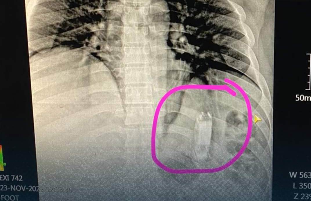 حيث استقبل المستشفى شاب يبلغ 40 عامًا، يعاني من آلام في المعدة وقيء، وبإجراء الكشف الطبي عليه وعمل الأشعات والفحوصات الطبية اللازمة، تبين وجود جسم غريب داخل المعدة.