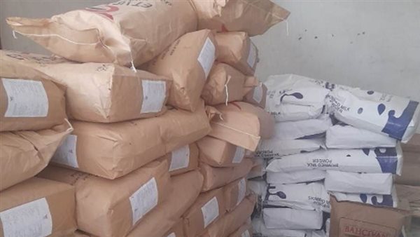 عدد 60 شيكارة حليب بودره مجفف زنه الواحدة 25 كيلو بإجمالي وزن طن ونص، 40 شيكارة حليب بودرة ميلك زنه الواحدة 25 كيلو بإجمالي وزن طن، 80 شيكارة شرش لبن برميات زنة الواحدة 25 كيلو بإجمالي وزن 2 طن، 200 شيكارة مالتو ديكسترون زنه الواحدة 25 كيلو بإجمالي وزن 5 أطنان، 160 شيكارة مصل حليب بودرة زنه الواحدة 25 كيلو بإجمالي وزن 4 أطنان.