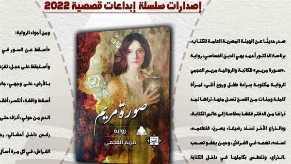 صدر حديثًا عن الهيئة المصرية العامة للكتاب، برئاسة الدكتور أحمد بهي الدين العساسي، رواية «صورة مريم» للكاتبة والروائية مريم العجمي.
