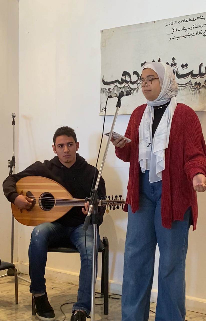 كما حضرت طالبات مدرسة على ابن ابى طالب الإعدادية ومنهن الطالبة كريمان الطيب تتقن موهبة الشعر والطالبة روان سويلم تجيد الرسم واعادة تدوير المواد الخشبية والحجرية من البيئة السيناوية إلى مجسمات ومنحوتات تجسد اشكالا عدة من الطيور والحيوانات وغيرهم، وهما وغيرهن مثل الطالبتين الاختين ليمار وريناد أيمن جمعة ويقوم بتدريبهم الفنان التشكيلي شريف القزاز.