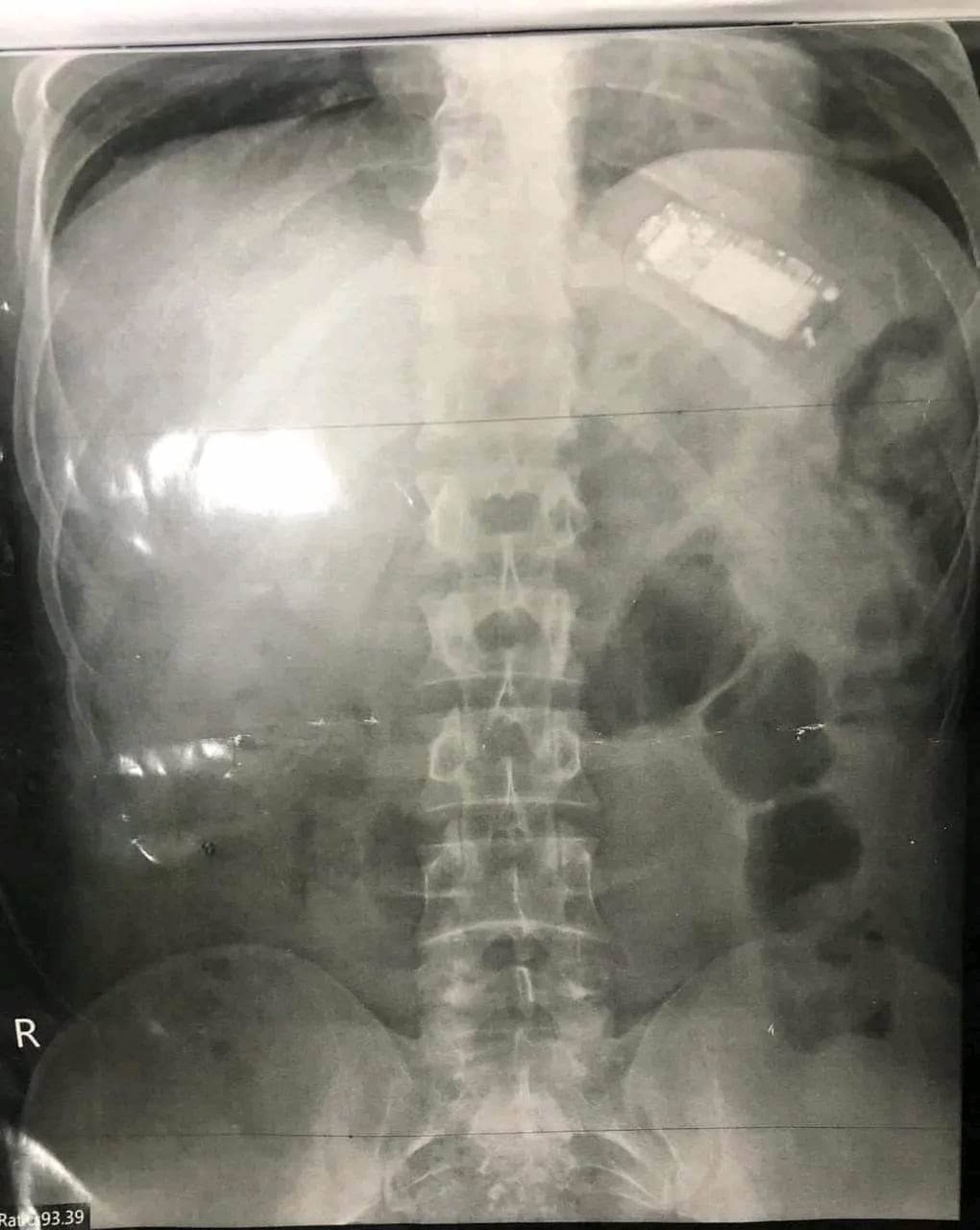 واستقبل شاب يبلغ من العمر 23 عامًا، يعاني من آلام في المعدة وفقدان في الوزن، وأخبر الأطباء أنه ابتلع هاتفًا محمولًا منذ شهرين، وتدهورت حالته الصحية.