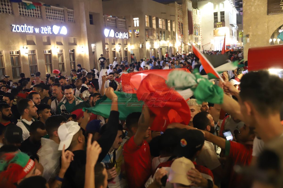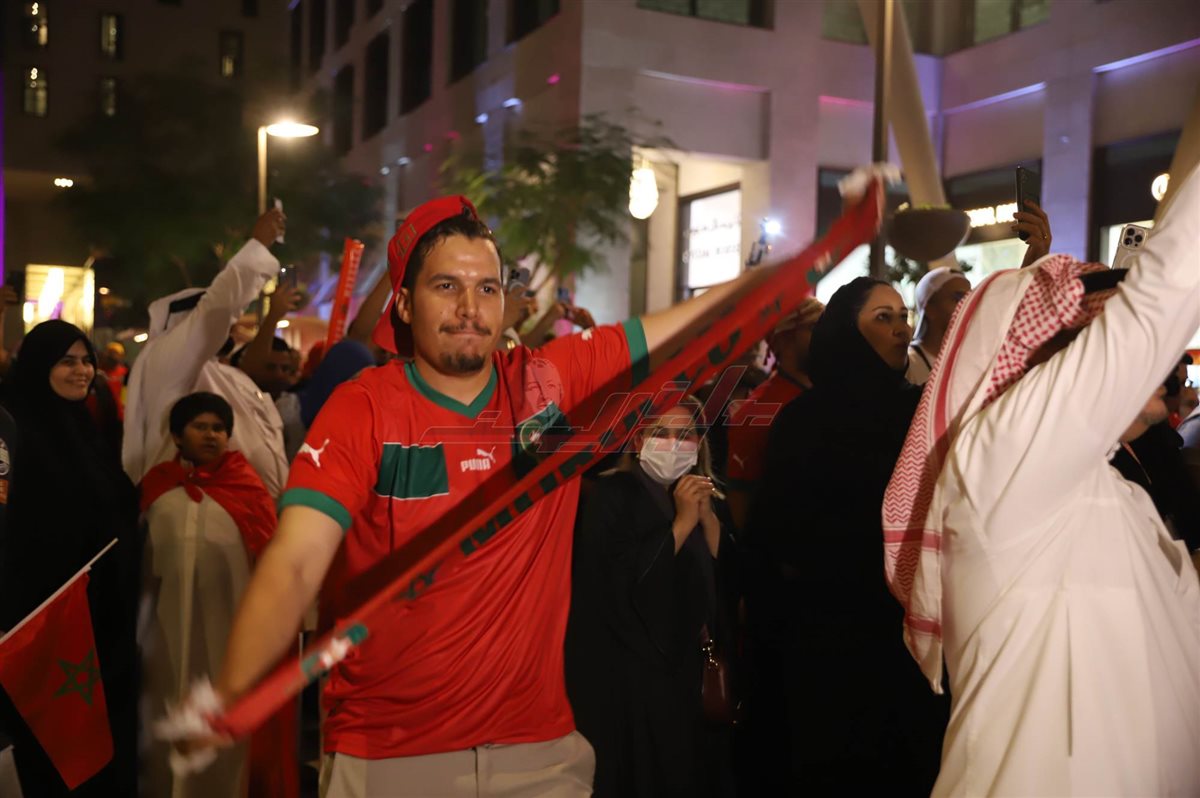 ظهرت أجواء الفرحة في قطر بعد تغلب منتخب المغرب على نظيره الإسباني بالأمس في استاد المدينة التعليمية حيث ظهرت الحشود في كل مكان تترقب فوز الفريق العربي الوحيد الذي أكمل المسيرة بكأس العالم حتى تأهل لربع النهائي.