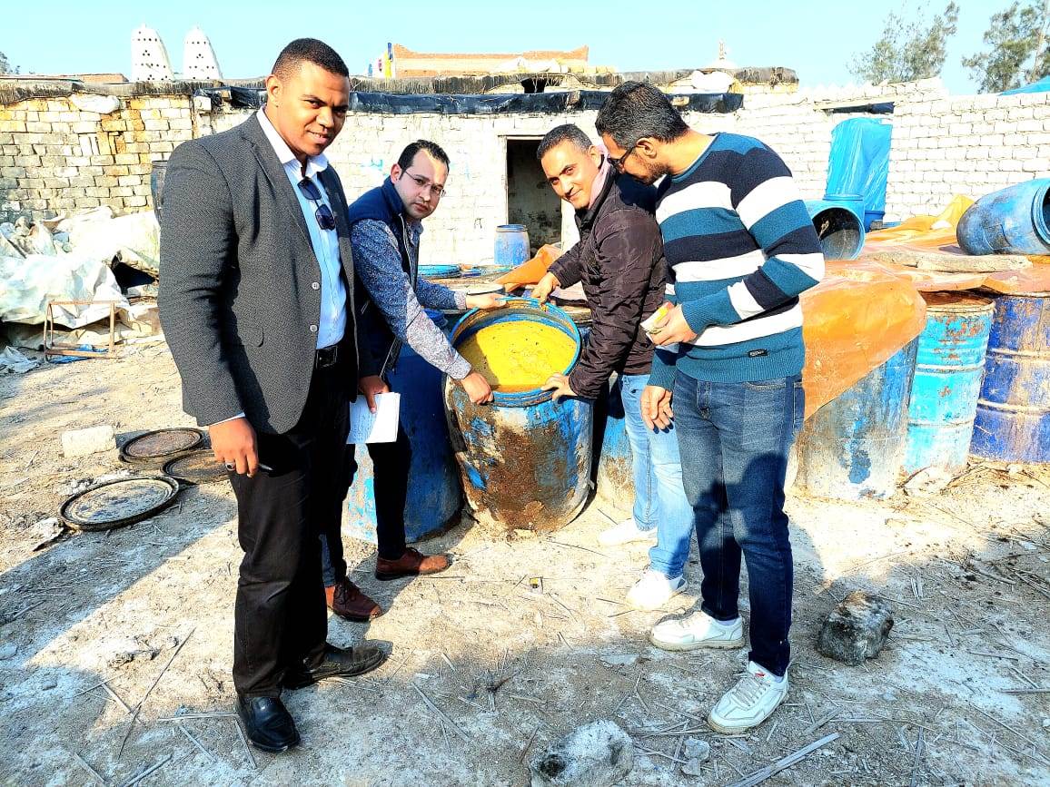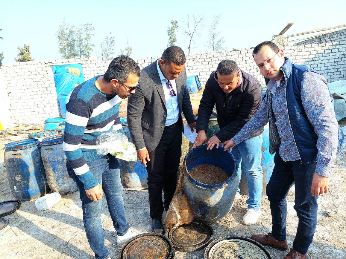 أسفرت عن ضبط مصنع حلاوة طحينية بير سلم بدون ترخيص يقوم بتجميع بواقي ومخلفات الحلاوة الطحينية الغير صالحة للاستهلاك الآدمى في أحد الأماكن المفتوحة الملحقة باحدي حظائر المواشي والمعرضه للقوارض والحشرات والأتربة وإعادة تعبئتها في عبوات أخرى وطرحا بالأسواق لجمهور المتسهليكن وتم التحفظ على، 5 أطنان حلاوة طحينية داخل 50 برميل "مخلفات حلاوه طحينية".