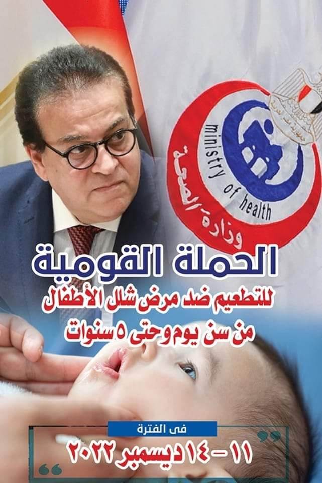 يذكر أن فعاليات الحملة القومية للتطعيم ضد مرض شلل الأطفال انطلقت اليوم بشمال سيناء، وذلك تحت رعاية الدكتور خالد عبد الغفار وزير الصحة والدكتور محمد عبد الفضيل شوشة محافظ شمال سيناء، وتحت شعار: "معًا للحفاظ على مصر خالية من مرض شلل الأطفال"، وتستمر حتى يوم الأربعاء القادم.