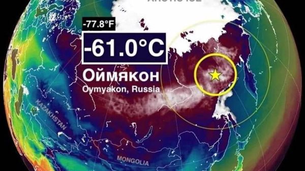 فيما سجلت القاهرة الكبرى درجة حرارة يوم الاثنين، وصلت ٢٣ درجة مئوية، وارتفعت اليوم الأربعاء ٢٥ درجة مئوية.. قالت هيئة الأرصاد الجوية المصرية، منذ قليل عبر صفحتها الرسمية على موقع التواصل الاجتماعي "فيسبوك"، إن مدينة أويمياكون الروسية سجلت يوم ١٢ ديسمبر درجة حرارة " 61-" درجة مئوية.