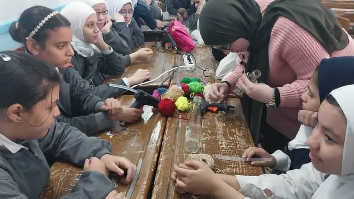 وأخرى قدمتها الفنانة نهال عصام الدين والتي قامت بعمل أشكال جمالية بالفوم جليتر والكانسون الملون، بينما قدمت الفنانة ياسمين جاد خبيرة التلي ورشة تلي للطالبات لتعليمهن هذه الحرفة التراثية النادرة.