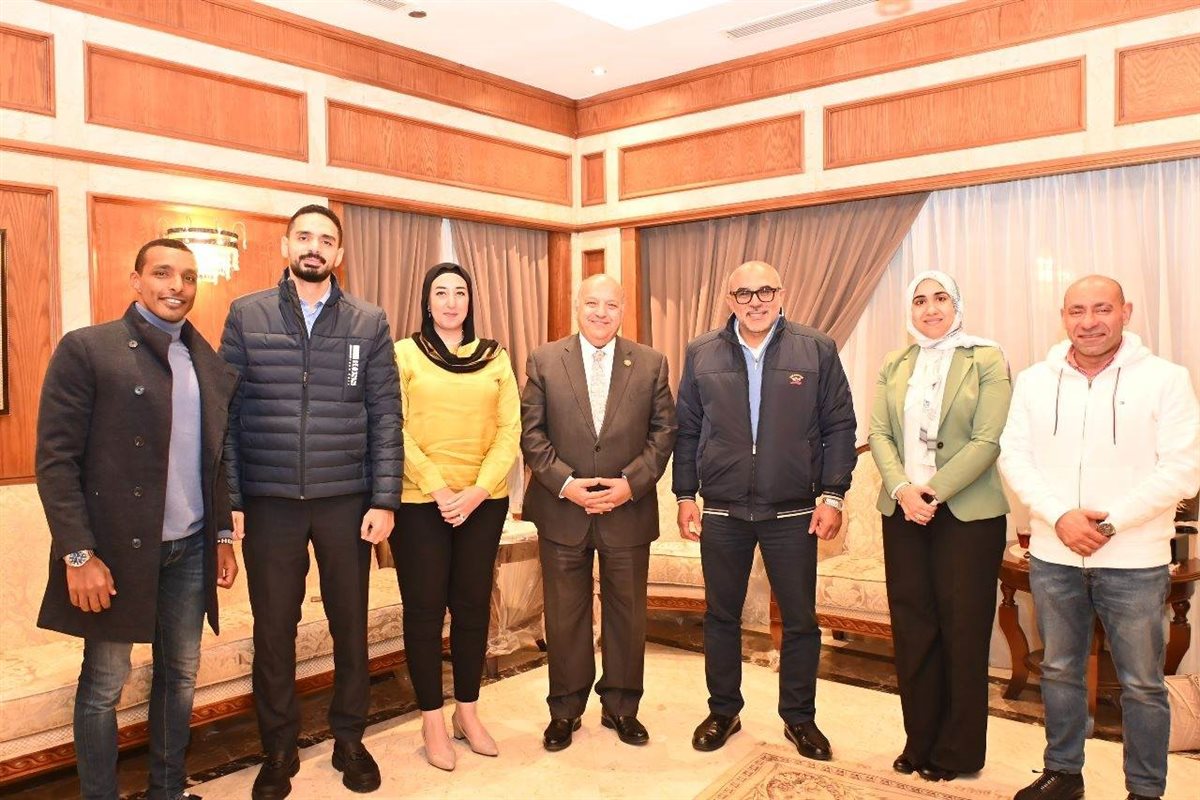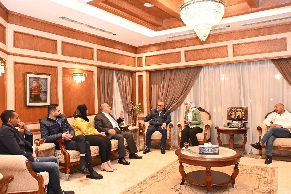 وكان في استقباله المستشار الدكتور محمد الدمرداش رئيس النادي في حضور أعضاء مجلس إدارة النادي أيمن بيرم، ومحمد مطيع، وياسر حفني، ونشوى النحاس.
