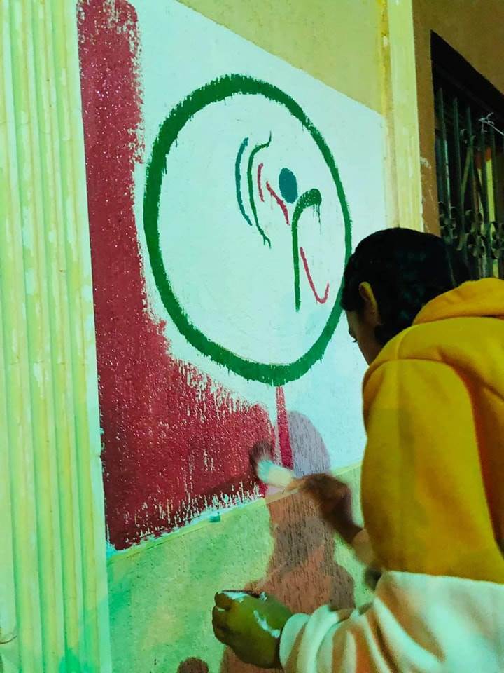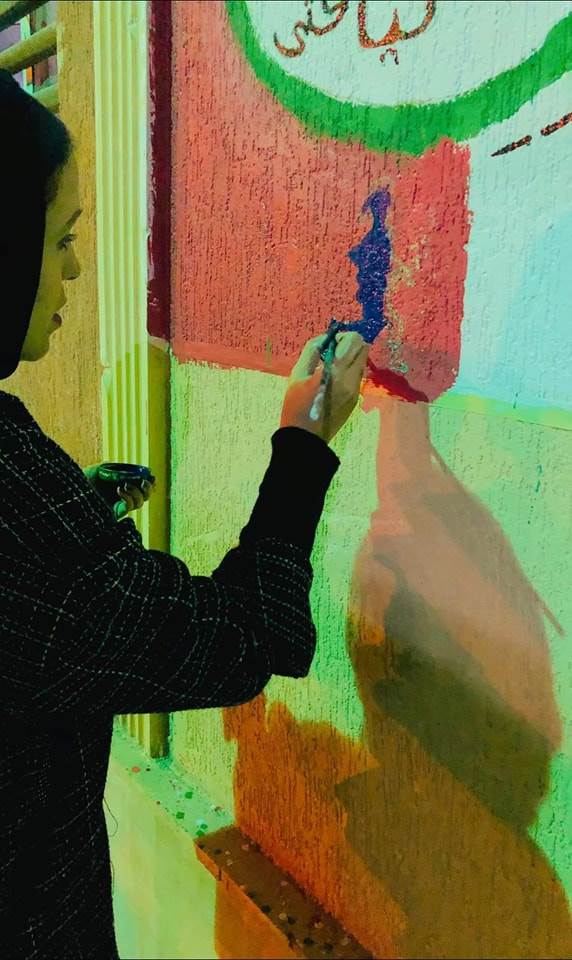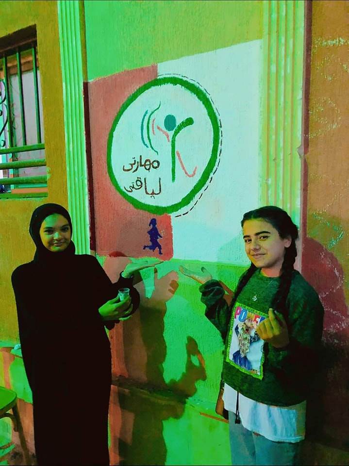 كما قامت الفتيات بعمل جدارية جرافيت بأيديهن لشعار مهارتي لياقتي، وذلك لأهمية كسب المهارات الحياتية والعمل سويا.. إذ لا بد للإنسان من التزود بالمعارف والعلوم كخطوة أساسية من خطوات اكتساب المهارات الحياتية على أهمية العمل التطوعي والمبادرة ودور الفرد في المجتمع، وأن لكل شخص بصمة وأثر لتشجيعهم على المشاركة الفعالة بمساعدة أشرف الكراني وناصر العرادي.