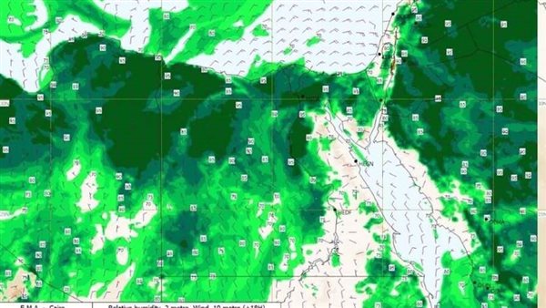 وأشارت الأرصاد الجوية إلى أن الأمطار هي الظاهرة المؤثرة خلال الفترة المقبلة؛ حيث تتساقط علي السواحل الشمالية والوجه البحري تكون متفاوتة الشدة؛ تتراوح من خفيفة إلي متوسطة وفي أحيان أخري تكون غزيرة علي بعض المناطق؛ بسبب رياح شمالية شرقية تدفع كميات من الرطوبة علي المناطق الساحلية خاصة"؛ كما تكون الأجواء باردة في أغلب الأحيان والصغري علي القاهرة 10 درجات.