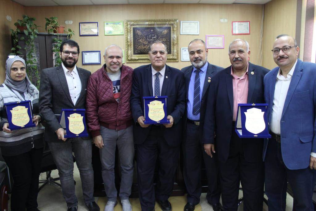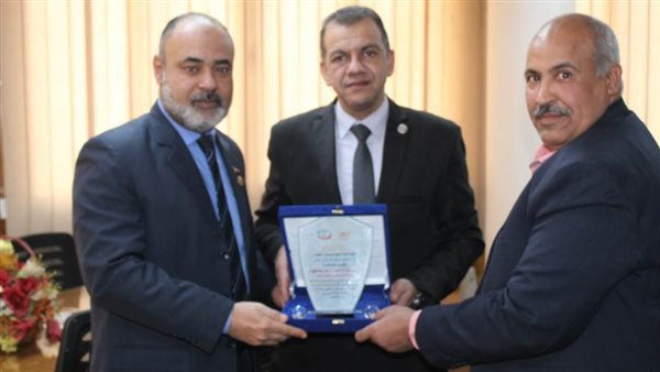كرم محمد عبدالرحمن نقيب العلوم الصحية بالقاهرة، اليوم، الدكتور أحمد عطا فهيم، مدير عام فرع التأمين الصحي بالقاهرة، وعدد من المتميزين في المجالات التابعة العلوم الصحية.