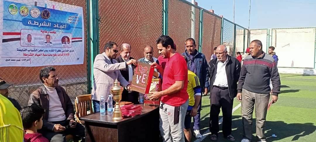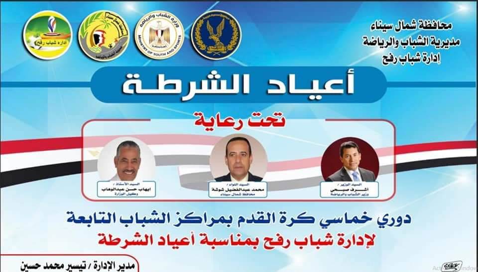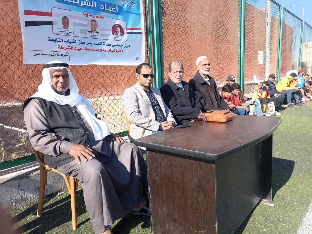 نظمت إدارة الشباب والرياضة برفح دوري خماسى كرة القدم على مستوى مراكز الإدارة، وذلك ضمن خطة النشاط الرياضى لهذا الشهر احتفالًا بعيد الشرطة المصرية.