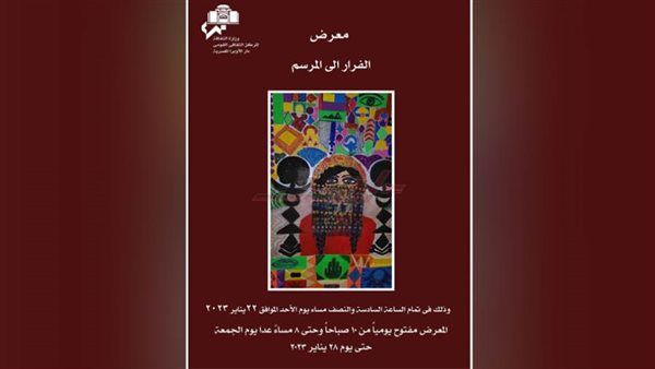 تقيم دار الأوبرا المصرية برئاسة الدكتور مجدي صابر معرض بعنوان "الفرار إلي المرسم" للفنانتين فاطمة عامر وعبلة عامر وذلك في السادسة والنصف مساء الأحد 22 يناير، ويستمر حتى السبت 28 يناير بقاعة زياد بكير.