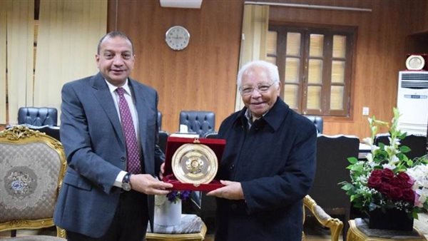 رئيس جامعة بني سويف يكرم الدكتور سعد مصلوح ويهديه درع الجامعة