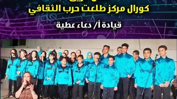 يقيم مركز طلعت حرب الثقافي بالسيدة نفيسة، التابع لقطاع صندوق التنمية الثقافية، حفل فني لفريق كورال طلعت حرب بقيادة دعاء عطية، في السابعة مساء السبت 28 يناير الجاري.