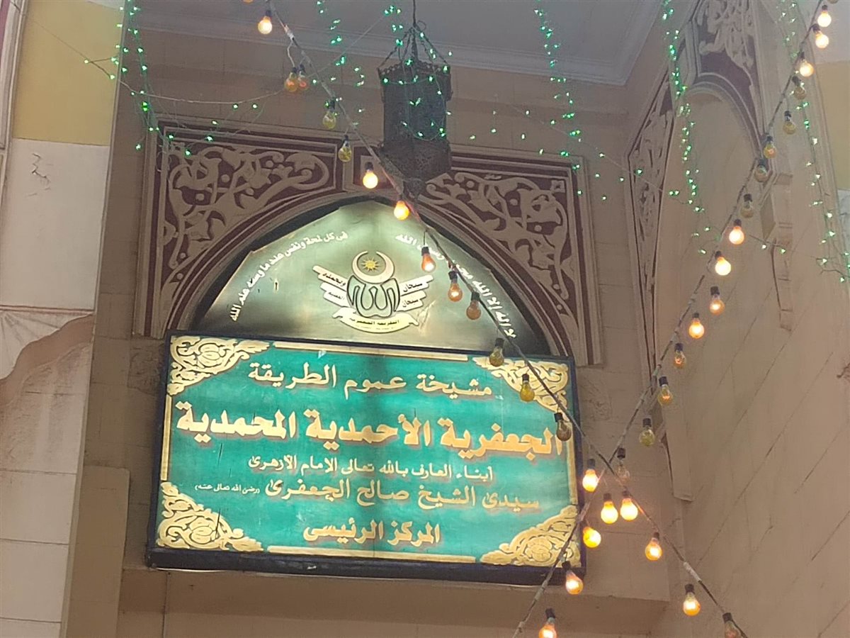 بحضور شيخ مشايخ الطرق الصوفية الدكتور عبدالهادى القصبى الأيدي متشابكة، والأناشيد متواصلة، والحلقات تصدح بالمديح، وتترنم بالذكر والتسبيح، والأجواء روحانية، تزينها هيبة وإجلال لصاحب الضريح، فتتلألأ الأنوار، ويزدحم الزوار.. إنها ساحة مسجد العارف بالله الشيخ صالح الجعفري، بمنطقة الدراسة بالقاهرة، مقر وملتقى الطريقة الجعفرية، ومعلم مقصود من معالم أبناء ومريدى الطرق الصوفية في مصر والعالم.