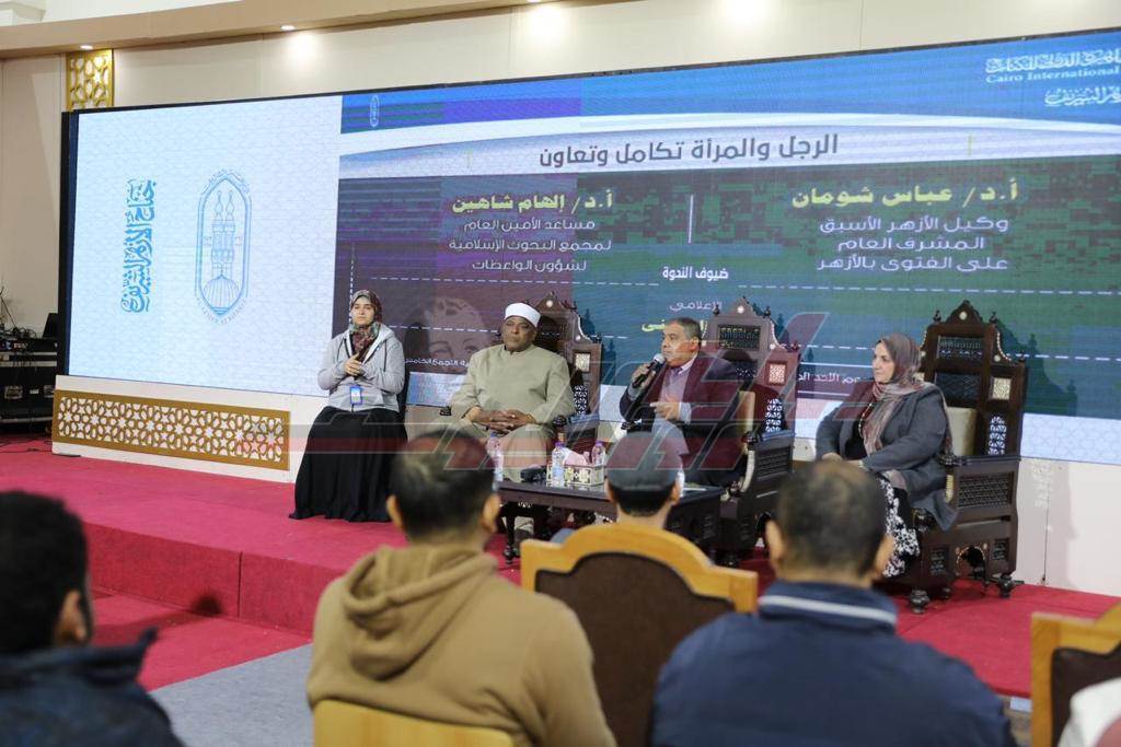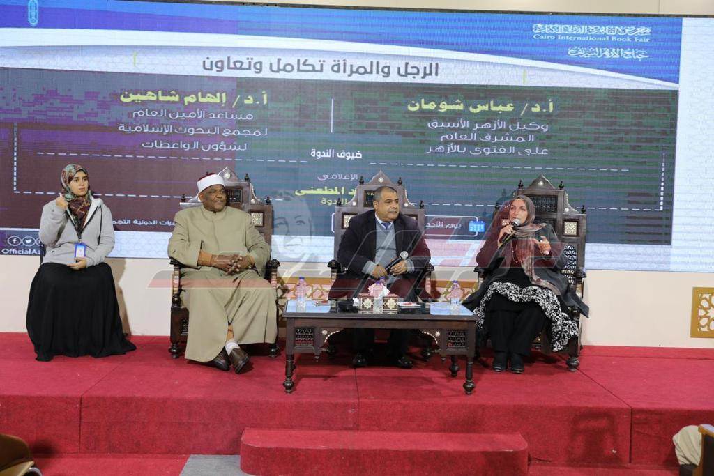 نظم جناح الأزهر الشريف بمعرض القاهرة الدولي للكتاب في نسخته ال54، ندوة تثقيفية حول طبيعة العلاقة بين الرجل والمرأة بعنوان: "الرجل والمرأة تكامل وتعاون"، ناقش فيها فضيلة الدكتور عباس شومان، وكيل الأزهر الأسبق، والدكتورة إلهام شاهين، مساعد الأمين العام لمجمع البحوث الإسلامية لشؤون الواعظات، وأدار الندوة الإذاعي القدير سعد المطعني.