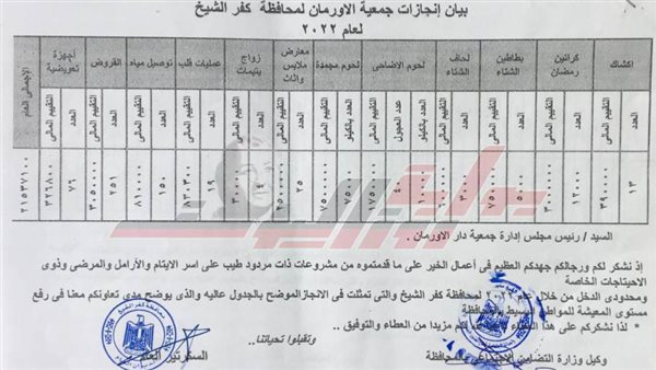 21 مليونًا و500 ألف جنيه الأورمان تستعرض ما حققته من إنجازات لعام 2022 بكفر الشيخ