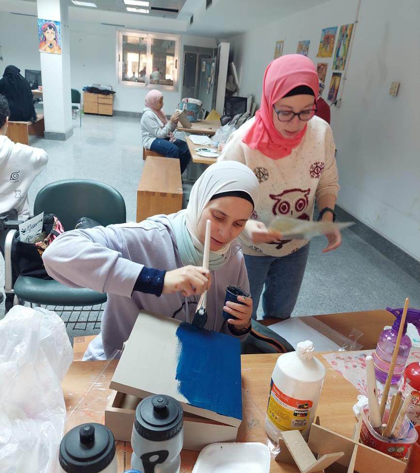 وفي نفس السياق تم تنظيم ورشة تعليمة للأطفال بعنوان" نول الخرز“، تعلموا خلالها مهارات تقوية التآزر البصري الحركي من خلال الخرز والألوان، وصناعة نول صغير من إعادة تدوير الورق المقوى، وتصميم أشكال هندسية.