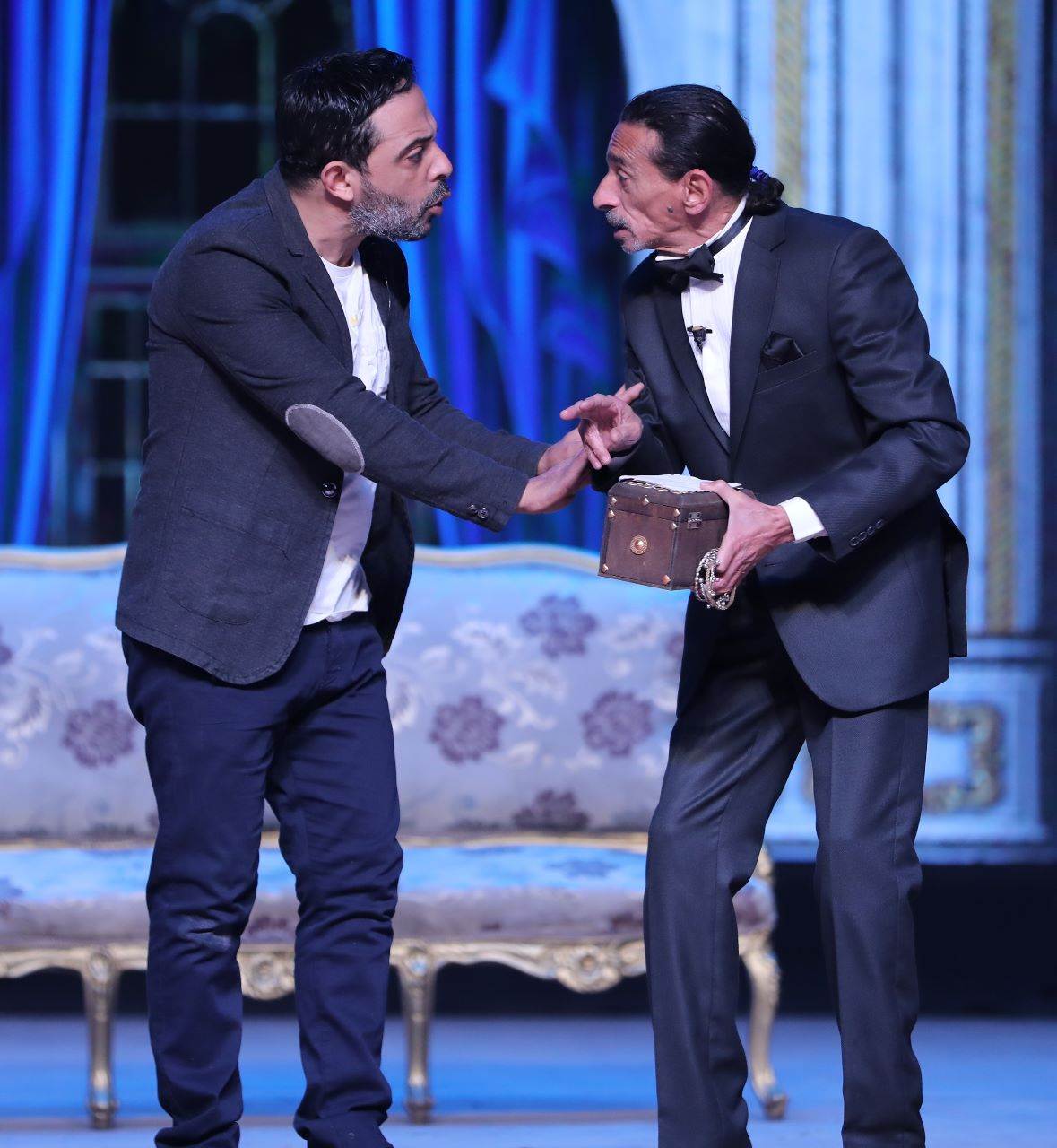 ووجه المخرج خالد جلال، وفريق العمل بالمسرحية، التحية والتقدير لاسم مؤلف العرض، الحاضر الغائب الدكتور مصطفي سليم "رحمه الله"، بحضور السيدة حرمه وأبنائه، والتقطت الصور التذكارية معهم عقب صعودهم على خشبة المسرح.