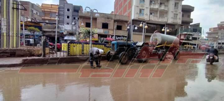 الدفع بسيارات إضافية لشفط مياه الأمطار بشوارع كفر الشيخ