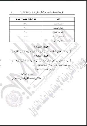 وتضمنت تلك الفئات، طب الأسنان 2200 جنيه، والعلاج الطبيعي والتمريض العالي 2000 جنيه، والتمريض المتوسط والفني الصحي 1000 جنيه.