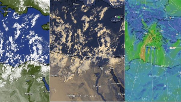 وفي غضون ذلك، تشير أخر صور للأقمار الصناعية إلى تكاثر السحب المنخفضة والمتوسطة الممطرة على مناطق متفرقة من شمال البلاد يصاحبها سقوط أمطار متفاوتة الشدة، متوقعة أن تكون متوسطة على السواحل الشمالية الغربية وشمال الوجه البحري قد تغزر أحيانا على محافظات "مطروح، الإسكندرية، البحيرة، كفر الشيخ"، بينما تمتد خفيفة إلى متوسطة على مناطق من السواحل الشمالية الشرقية وجنوب الوجه البحري، لافتة إلى الفرصة قائمة لسقوط أمطار خفيفة على مناطق من القاهرة الكبرى ومدن القناة وخليج السويس مساء اليوم الثلاثاء.