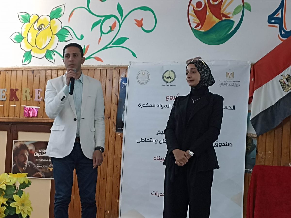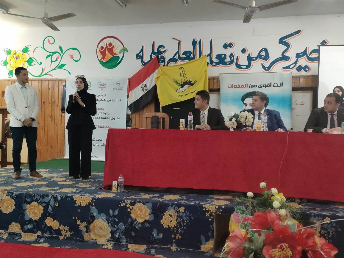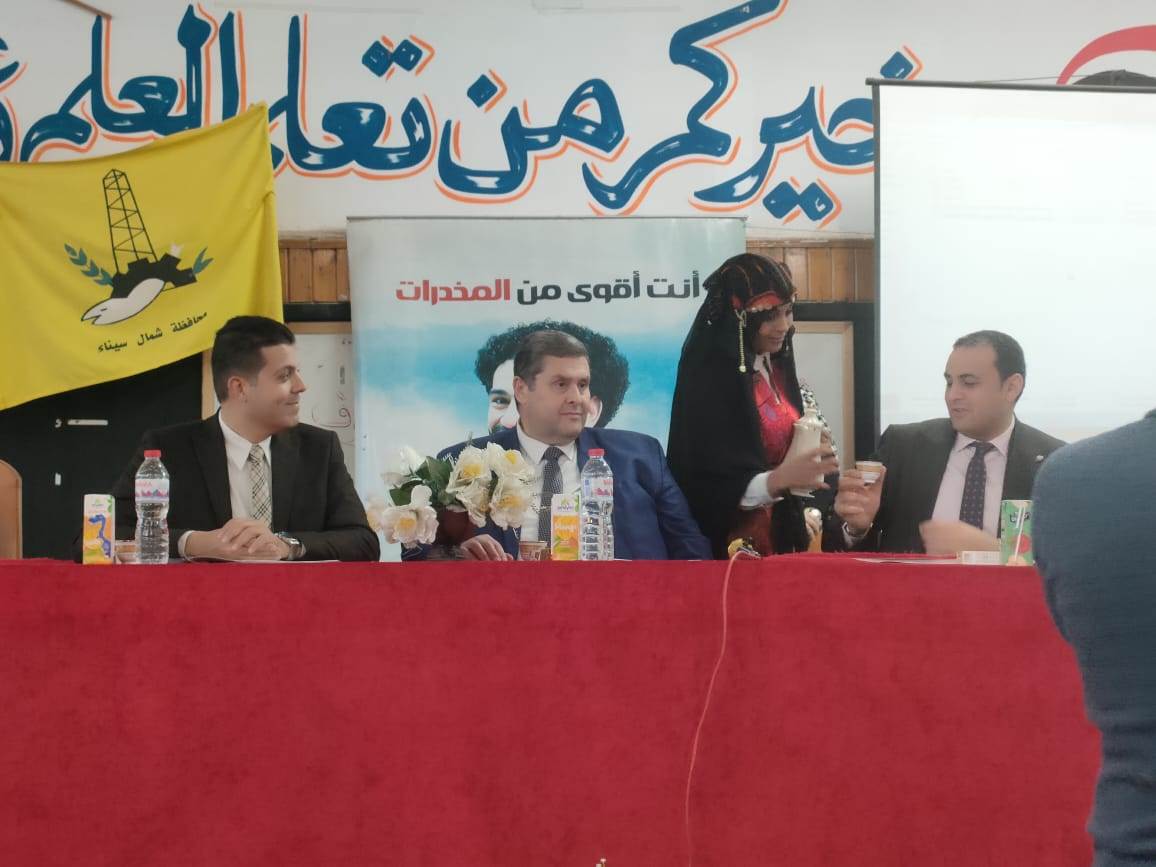 ونقل تحيات الدكتور عمرو عثمان مساعد وزير التضامن الاجتماعي ومدير صندوق مكافحة وعلاج الإدمان والتعاطى والدكتورة نيفين القباج وزيرة التضامن الاجتماعى.. مشيرا الى شكر الدكتور محمد عبدالفضيل شوشة محافظ شمال سيناء لدعمه المشروع، وكذلك شكر وكيل وزارة التربية والتعليم على المشاركة الفعالة لنجاح المشروع والى المتطوعين.