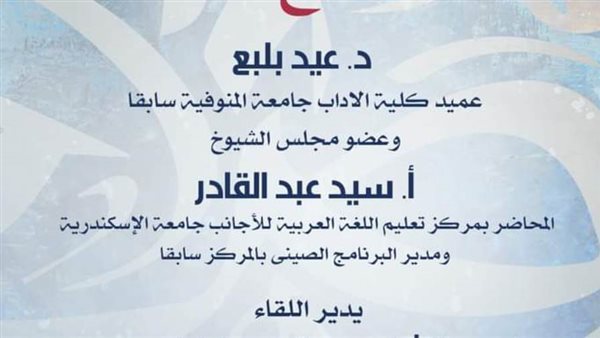 تستضيف أوبرا دمنهور كلا من الدكتور عيد بلبع عميد كلية الآداب جامعة المنوفية سابقا، وعضو مجلس الشيوخ والسيد عبد القادر محاضر بمركز تعليم اللغة العربية بجامعة الإسكندرية والشاعر عبد المنعم كامل في صالون ثقافي بعنوان "تحديات اللغة العربية"، والذي تنظمه الإدارة العامة للنشاط الثقافي والفكري تحت إشراف الفنان أمين الصيرفي، وذلك في السابعة مساء الاثنين 27 فبراير على مسرح أوبرا دمنهور.