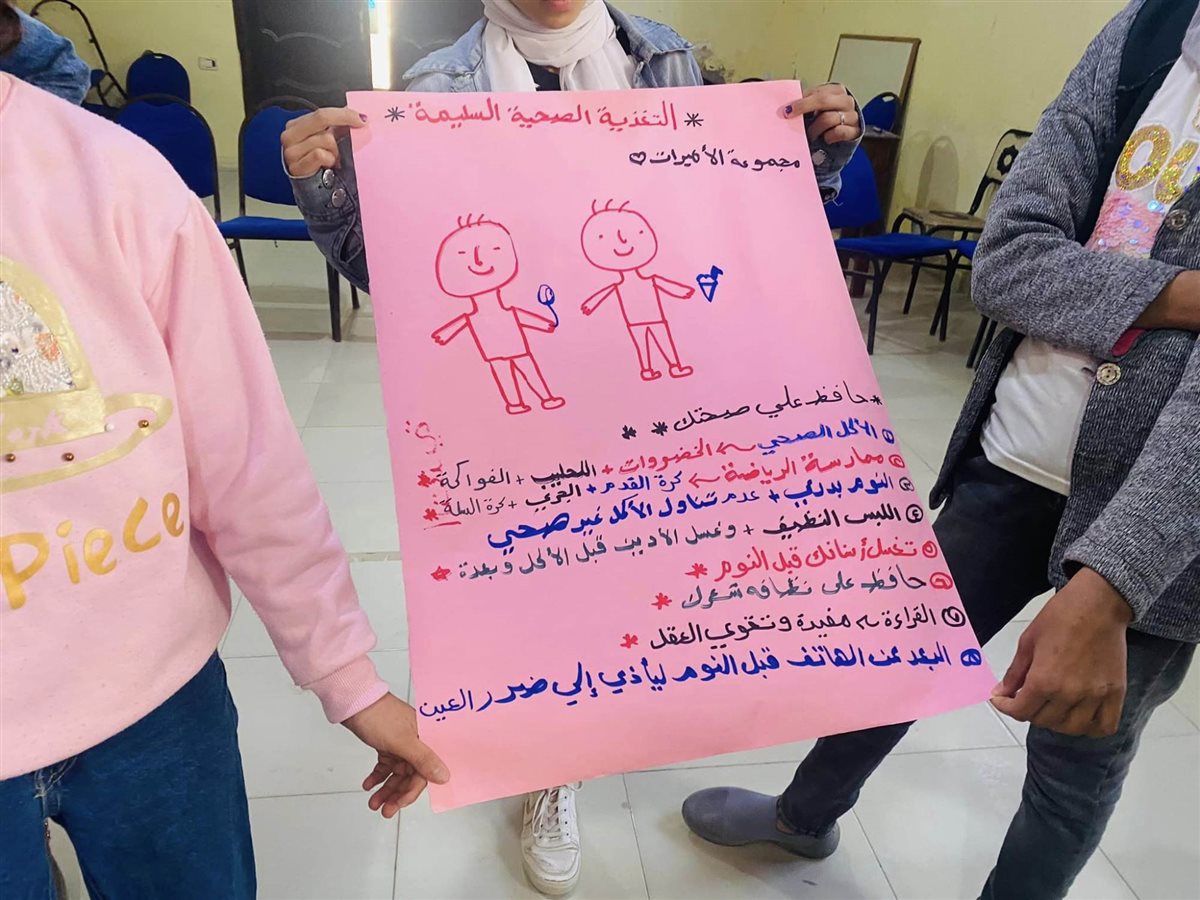 انطلاقًا من المبادرة التي أطلقها الرئيس عبدالفتاح السيسي لعلاج أمراض سوء التغذية للأطفال، واهتمام الدولة بالتغذية السليمة للأطفال.. نفذ مركز شباب مدينة العريش ورشة عمل تحت عنوان: "صحتنا في أكلتنا".