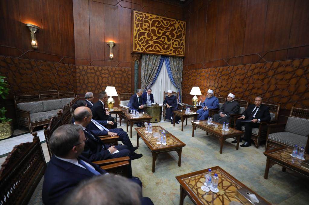 كما حضر اللقاء وفد أزهري رفيع المستوى، ضم كلا من؛ الدكتور محمد الضويني، وكيل الأزهر الشريف، والدكتور سلامة داود، رئيس جامعة الأزهر، والسفير قدري عبد المطلب، مسؤول المراسم والعلاقات الخارجية بالأزهر.
