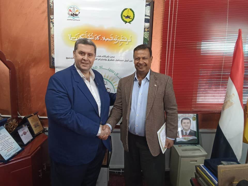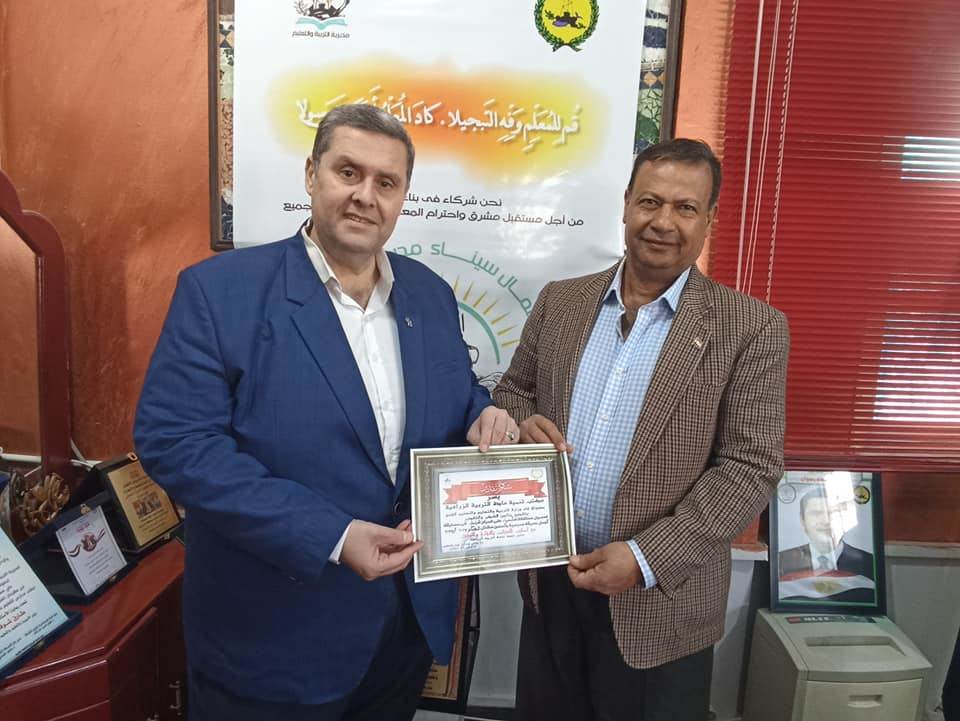 وتقدم بخالص التهانى والتبريكات الى الدكتور محمد عبدالفضيل شوشة محافظ شمال سيناء، وإلى حسين العوضى موجه عام التربية الزراعية، وإلى مدير إدارة المدرسة والعاملين بها بهذه المناسبة.