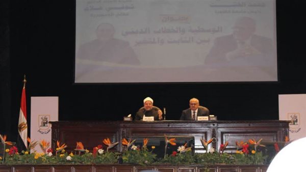 جاء ذلك خلال محاضرة لفضيلة المفتي بجامعة القاهرة تحت عنوان: "الوسطية والخطاب الديني بين الثابت والمتغير"، والتي حاضر فيها أيضًا الأستاذ الدكتور محمد عثمان الخشت -رئيس جامعة القاهرة- حيث عبَّر فضيلة المفتي عن سعادته بوحوده في جامعة القاهرة التي لها قدم راسخة في المحافل العلمية، وتقدَّم بالشكر إلى رئيس الجامعة لإتاحة الفرصة لتناول موضوع الوسطية في الإسلام.