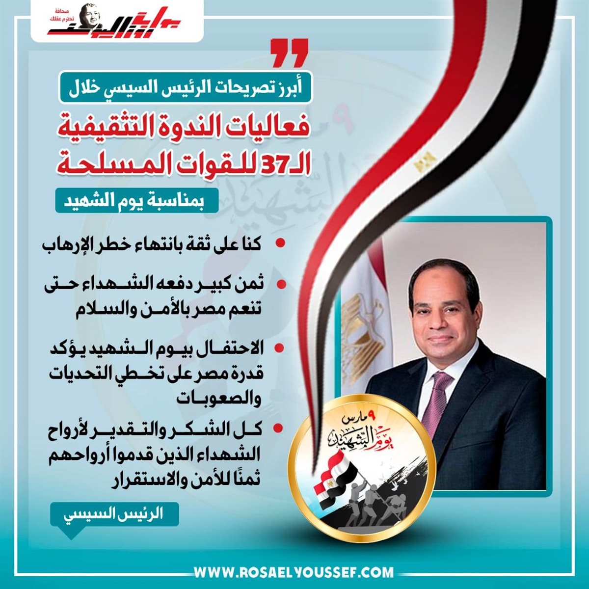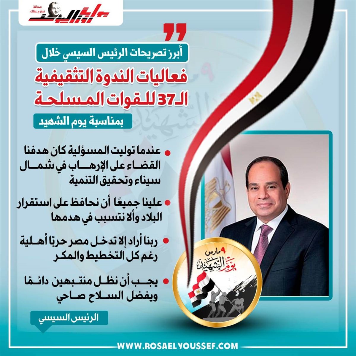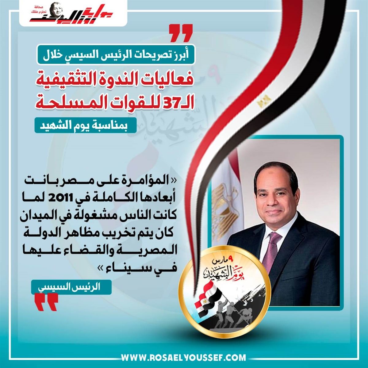 أبرز تصريحات الرئيس السيسي خلال فعاليات الندوة التثقيفية الـ37 للقوات المسلحة بمناسبة يوم الشهيد
