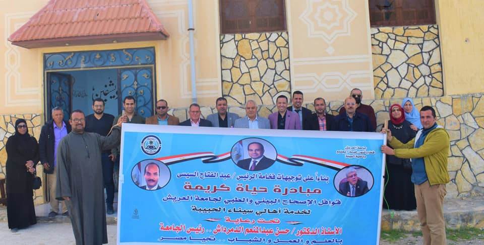 تابع الدكتور حسن عبد المنعم الدمرداش رئيس جامعة العريش أعمال قافلة جامعة العريش المتكاملة، لخدمة أهالي قريتي الكرامة والأمل بشمال سيناء، في إطار المشروع القومي لتطوير الريف المصري "مبادرة حياة كريمة"، برعاية فخامة الرئيس عبد الفتاح السيسي رئيس الجمهورية.