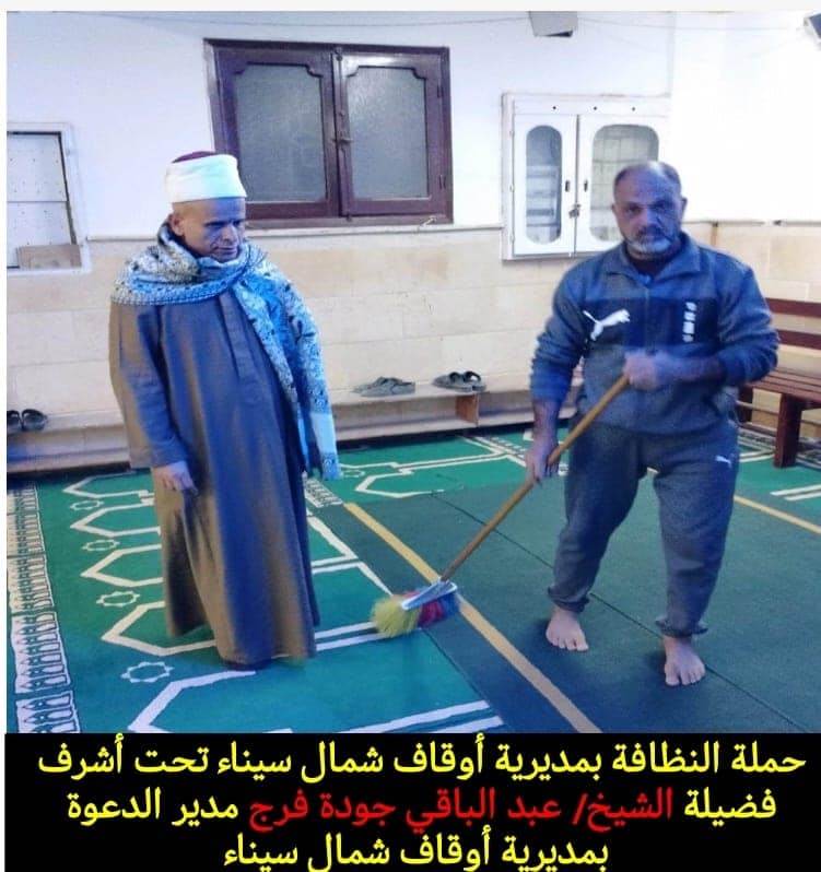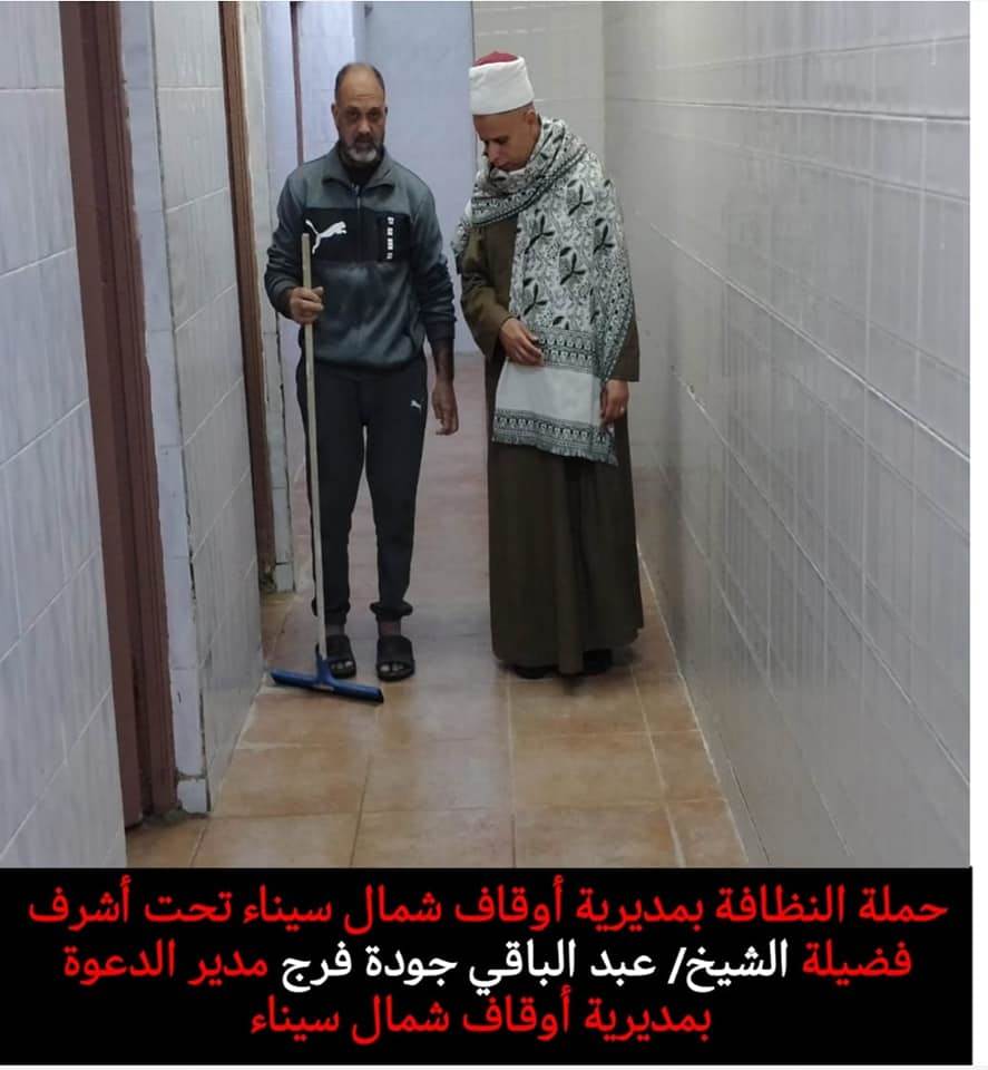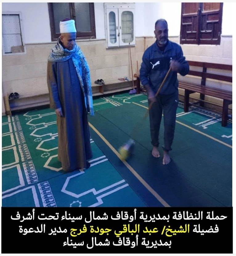 وأعلن عن استمرار الحملة اليوم (الأحد) للنظافة الموسعة للمساجد بمديرية أوقاف شمال سيناء على مستوى مراكز محافظة شمال سيناء تحت شعار : "كلنا في خدمة بيوت الله عز وجل"، والتي تستمر حتى نهاية شهر شعبان الجارى