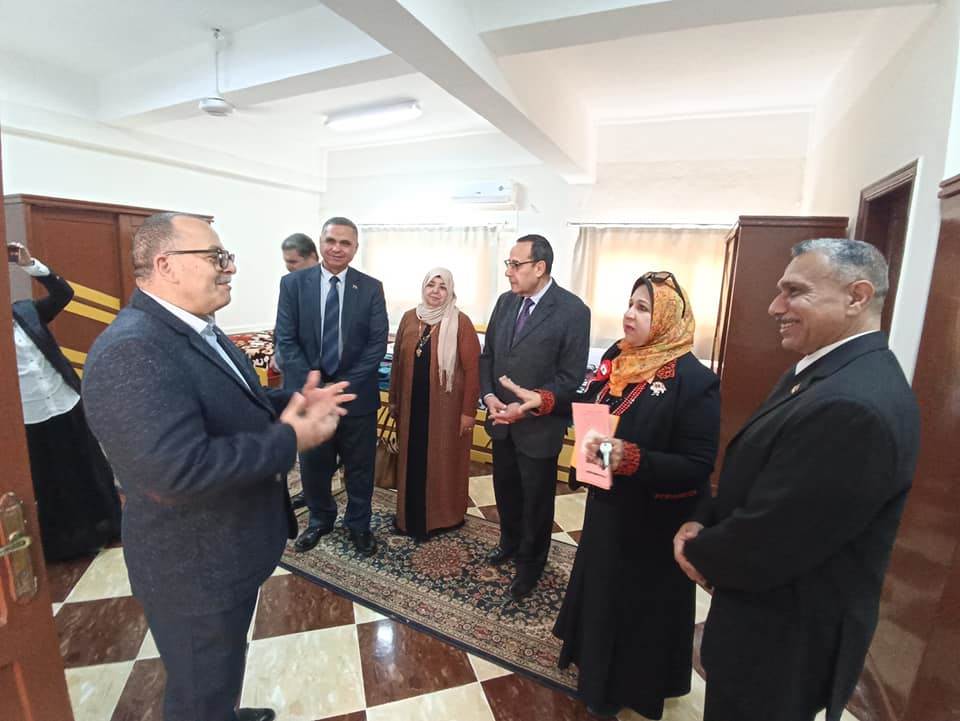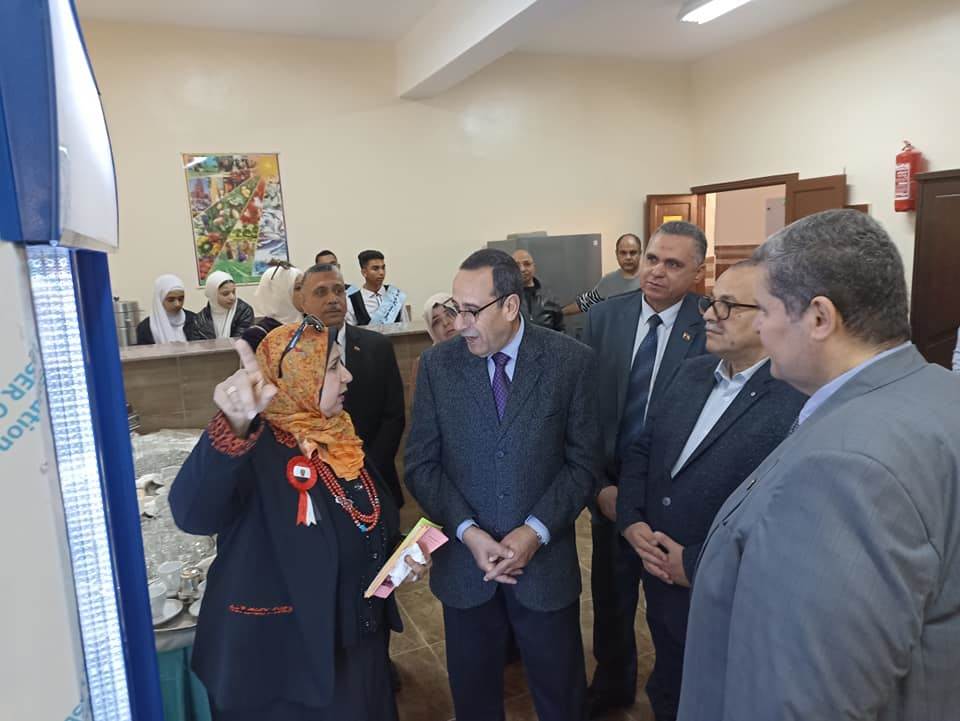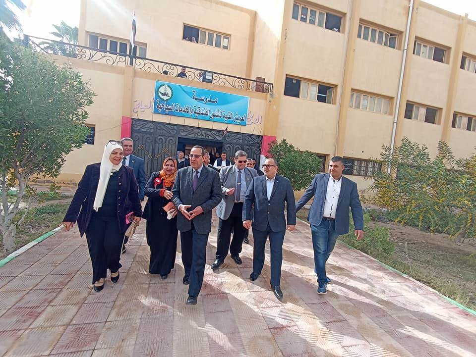 وقد رافق وكيل الوزارة كل من: ممدوح الشربينى مدير عام التعليم الفنى، عفت مصطفى مدير إدارة التعليم التجاري، وعاطف العلاقمي مدير إدارة العلاقات العامة والإعلام .. حيث كان فى استقباله: سوزى عبد الله، مدير المدرسة ونفاد زكريا وكيل التعليم وأشرف كمال مشرف الجناح الفندقى.