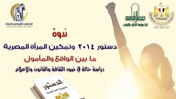 ضمن خطة نشاط وزارة الثقافة، وتحت رعاية الدكتور هشام عزمي الأمين العام للمجلس الأعلى للثقافة؛ والكاتب محمد عبدالحافظ ناصف، رئيس الإدارة المركزية للشعب واللجان الثقافية، يعقد المجلس الأعلى للثقافة، ندوة "دستور 2014 وتمكين المرأة المصرية ما بين الواقع والمأمول.. دراسة حالة في ضوء الثقافة والقانون والإعلام"، التي تنظمها لجنة مواجهة التطرف والإرهاب بالتعاون مع المجلس القومي للمرأة؛ وذلك في تمام السادسة مساء الأحد 19 مارس الحالي 2023 بقاعة المجلس الأعلى للثقافة.