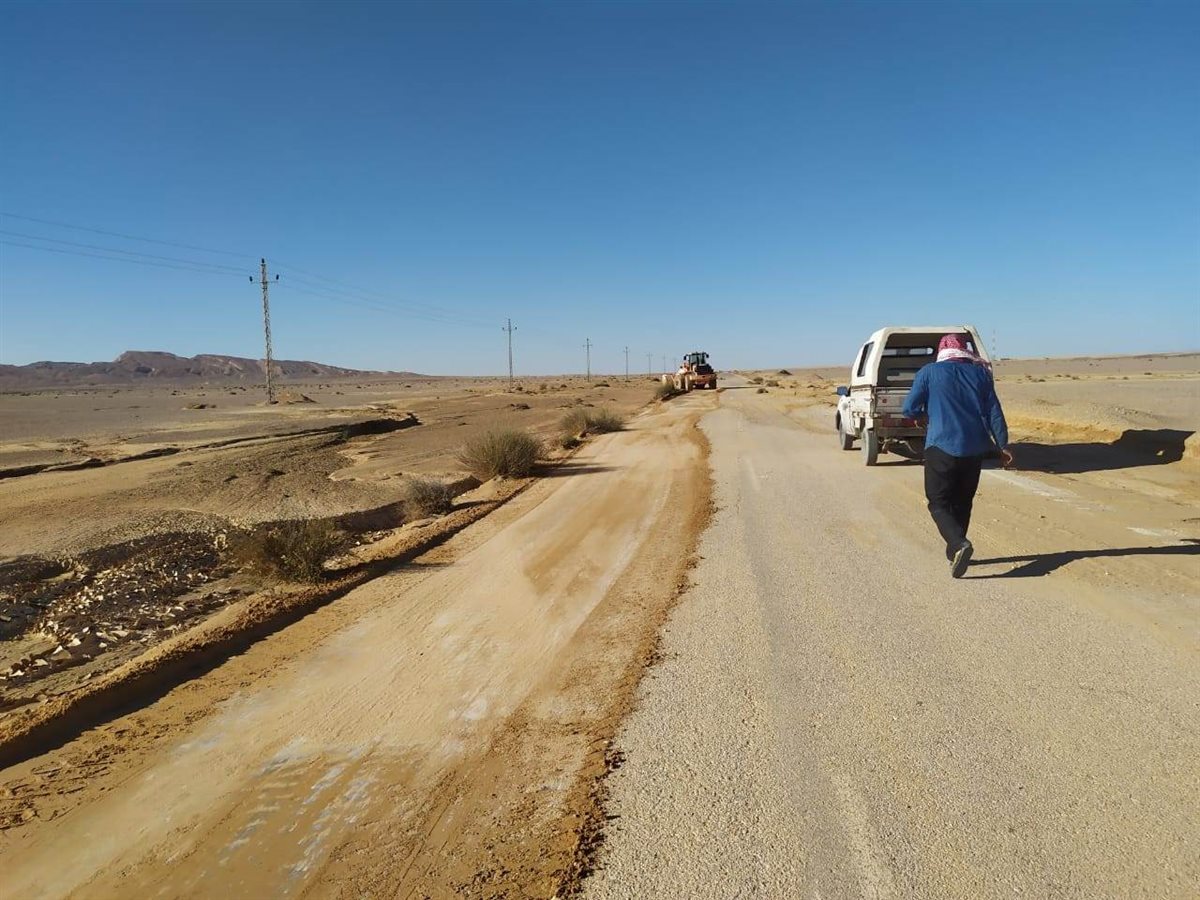إزالة آثار السيول في الحسنة بوسط سيناء
