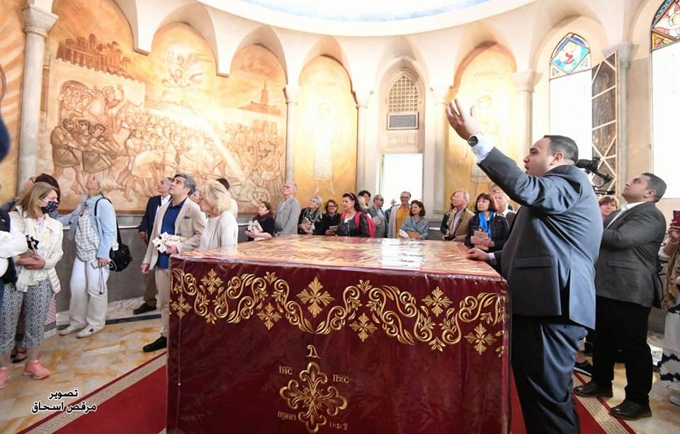 وحرص أعضاء الوفد على التقاط الصور التذكارية مع قداسة البابا، وتوجهوا بعدها إلى الكاتدرائية المرقسية بالعباسية، ومزار القديس مار مرقس لزيارتهما، واستمعوا لشرح وافٍ عنهما.