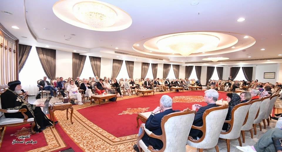 ألقى عليهم البابا تواضروس محاضرة تناول خلالها لمحات من تاريخ مصر والكنيسة القبطية ودورها في المجتمع.