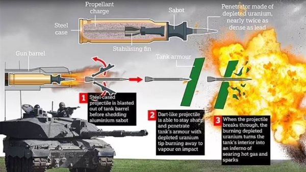قال سكوت بوسطن، كبير المحللين الدفاعيين بمؤسسة RAND، عند إطلاقها، تصبح ذخيرة اليورانيوم المستنفد "سهمًا معدنيًا غريبًا يتم إطلاقه بسرعة عالية للغاية".