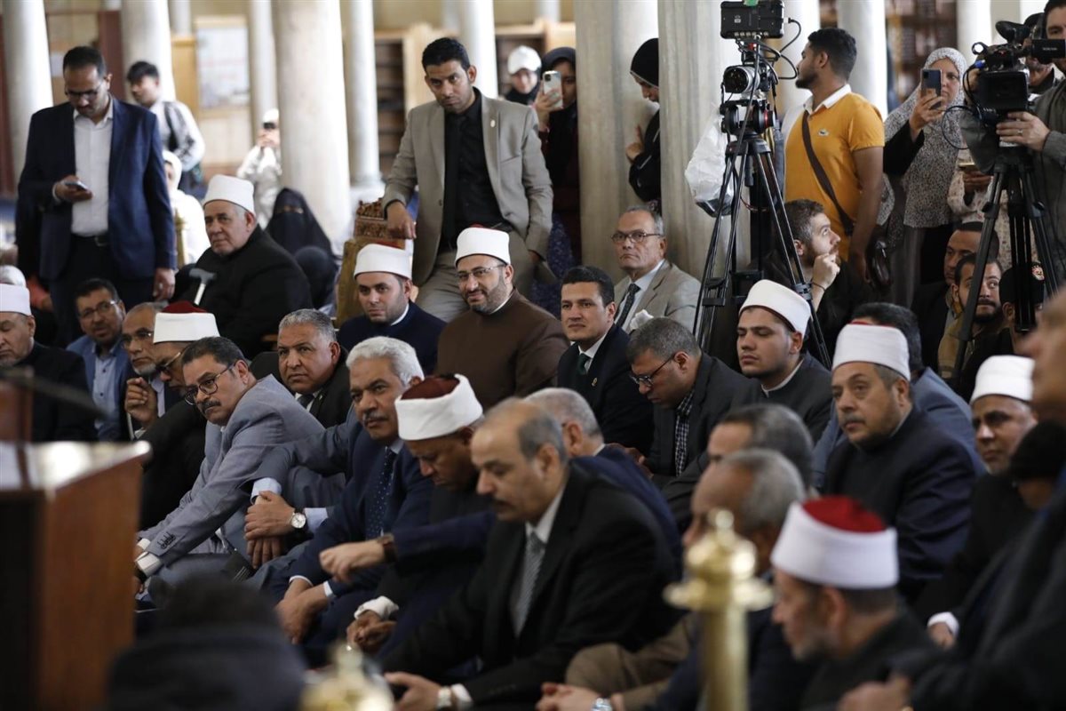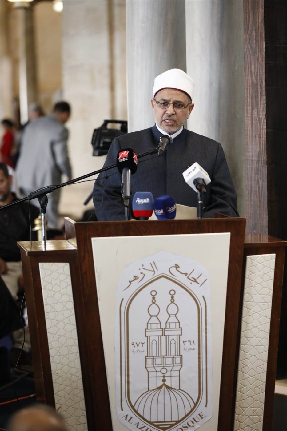 وتابع فضيلته: "الحمد لله الذي جعل الأزهر الشريف كعبة للعلم، تهوي إليه الأفئدة من كل فج عميق، الحمد لله الذي مَنَّ علينا بشرف الخدمة فيه، والعيش في رحابه، والارتواء من نبعه العذب، اللهم كما أكرمتنا بشرف الخدمة فيه فأعنا وتقبل منا وأدم علينا وعلى العالم أجمع نعمةَ الأزهر الشريف، حصنِ الدين واللغة، ومنارةِ التوسط والاعتدال، اللهم ووفق شيخه الجليل الإمام الأكبر الأستاذ الدكتور أحمد الطيب لإتمام ما شيد فيه من نهضة وتطوير وتجديد.