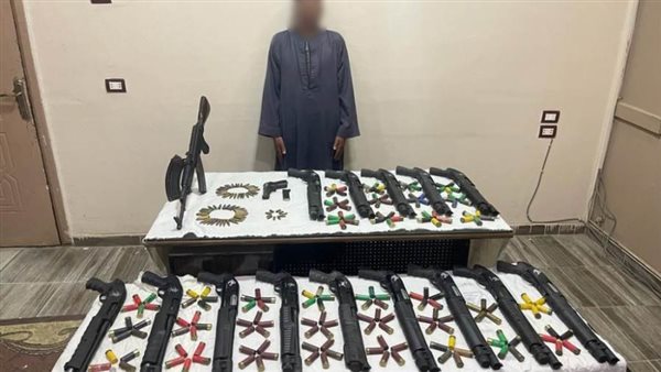 عقب تقنين الإجراءات تم استهدافه وأمكن ضبطه بمسكنه.. وبحوزته عدد 16 قطعة سلاح نارى عبارة عن (بندقية آلية- 14 بندقية خرطوش- طبنجة - 2 خزينة آلية - عدد من الطلقات مختلفة الأعيرة).