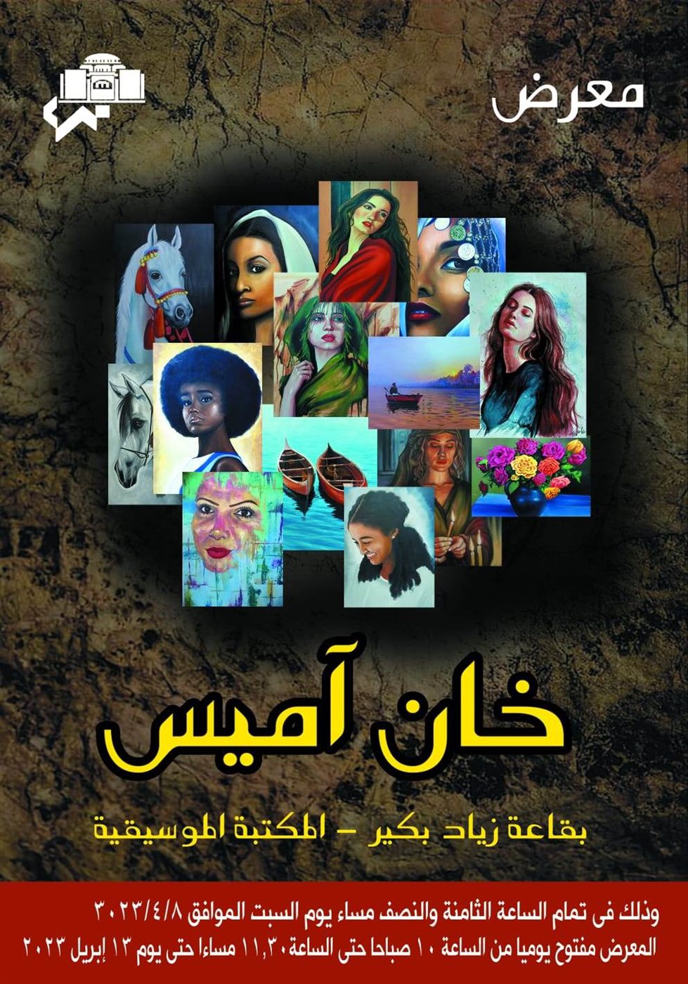 يفتتح الدكتور خالد داغر، رئيس دار الأوبرا معرضاً تحت عنوان "خان آميس" بقاعة زياد بكير فى الثامنة والنصف مساء السبت 8 أبريل، والذي يستمر حتى الخميس 13 إبريل، وهو معرض حر يشارك فيه 25 فنانا من فئات عمرية مختلفة.