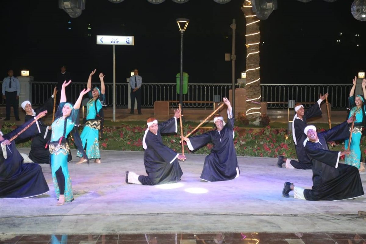 وعقب افتتاح القصر، توجه الحضور إلى الممشى السياحي بكورنيش بني سويف، وشهدوا حفلا فنيا ضمن ليالي رمضان الثقافية والفنية، وديفيليه استقبال لفرقة أبوصير الآلات الشعبية، ثم تفقد معرض الورش الحرفية والفنية، ثم على المسرح بدأت الاحتفالية بالسلام الوطني ثم عرض لفرقة بني سويف للفنون الشعبية، وعرض فني لفرقة الفيوم للموسيقى العربية.
