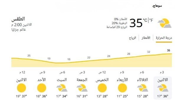 أعلن اللواء طارق الفقي محافظ سوهاج رفع درجة الاستعداد بالمحافظة وجميع المديريات والهيئات والوحدات المحلية للمراكز والمدن والأحياء والقرى، واتخاذ الإجراءات الاحترازية اللازمة تحسبا لعدم الاستقرار في الأحوال الجوية، بدءا من اليوم الاثنين 10 إبريل الجاري، وحتى الأربعاء 12 إبريل ولمدة 3 أيام متتالية، وذلك في ضوء تحذيرات هيئة الأرصاد الجوية بسقوط امطار على أغلب المحافظات ومن ضمنها محافظة الجوار "البحر الأحمر"، كما تنشط رياح مثيرة للرمال والأتربة على شمال وجنوب الصعيد.