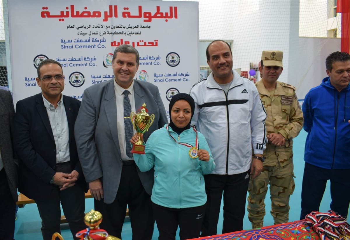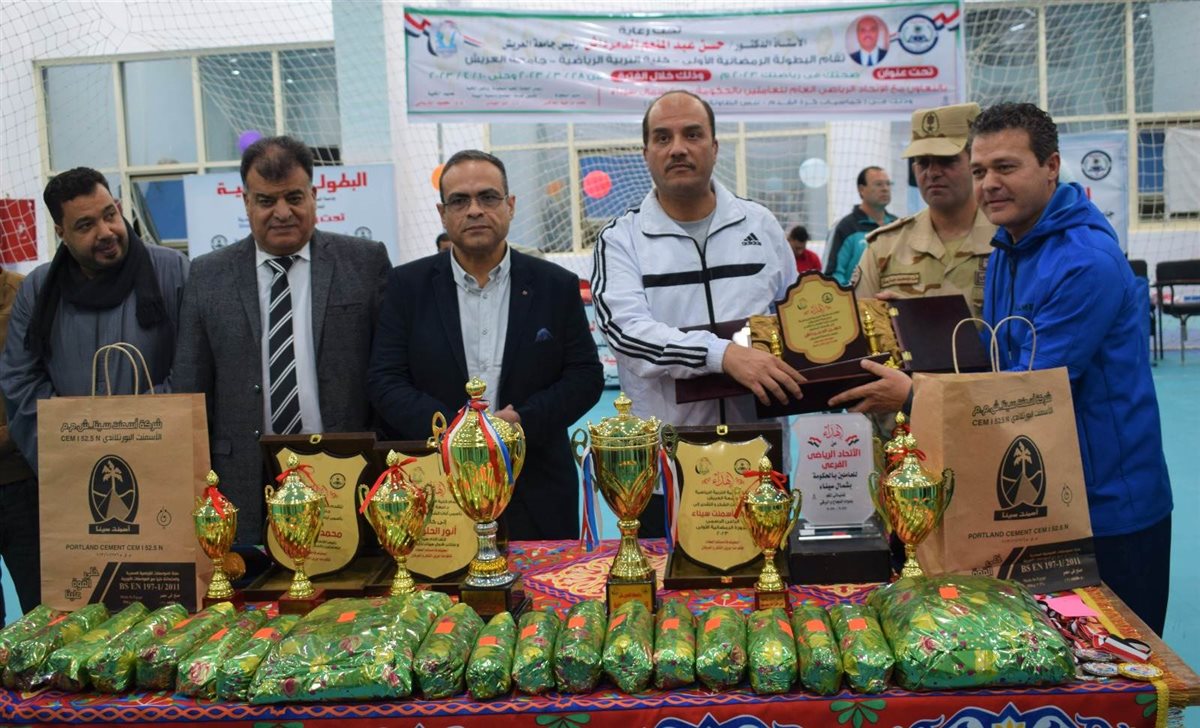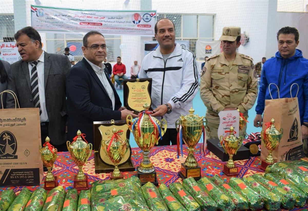 جاء ذلك بحضور المهندس أحمد مباشر مدير شركة أسمنت سيناء الراعى الرسمي للبطولة، وعدد من أعضاء هيئة التدريس بالجامعة وأمين عام الجامعة، وعدد من القيادات التنفيذية بالمحافظة.