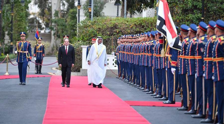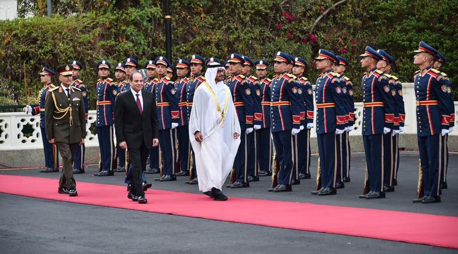 جاء ذلك خلال استقبال الرئيس عبد الفتاح السيسي، اليوم بقصر الاتحادية، الشيخ محمد بن زايد آل نهيان رئيس دولة الإمارات العربية المتحدة، حيث أقيمت مراسم الاستقبال الرسمي وتم استعراض حرس الشرف وعزف السلامين الوطنيين.
